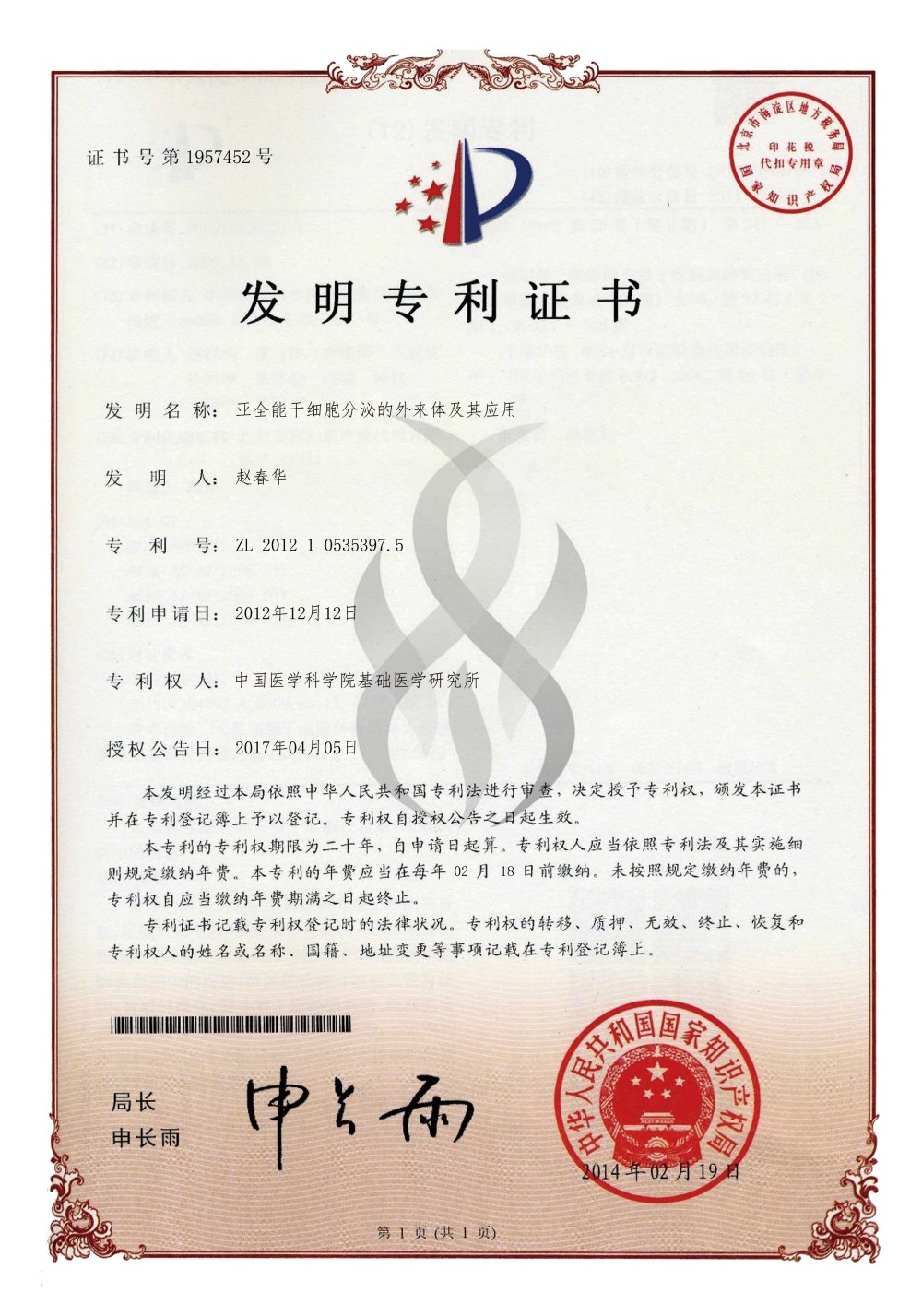 國家級干細胞專利
